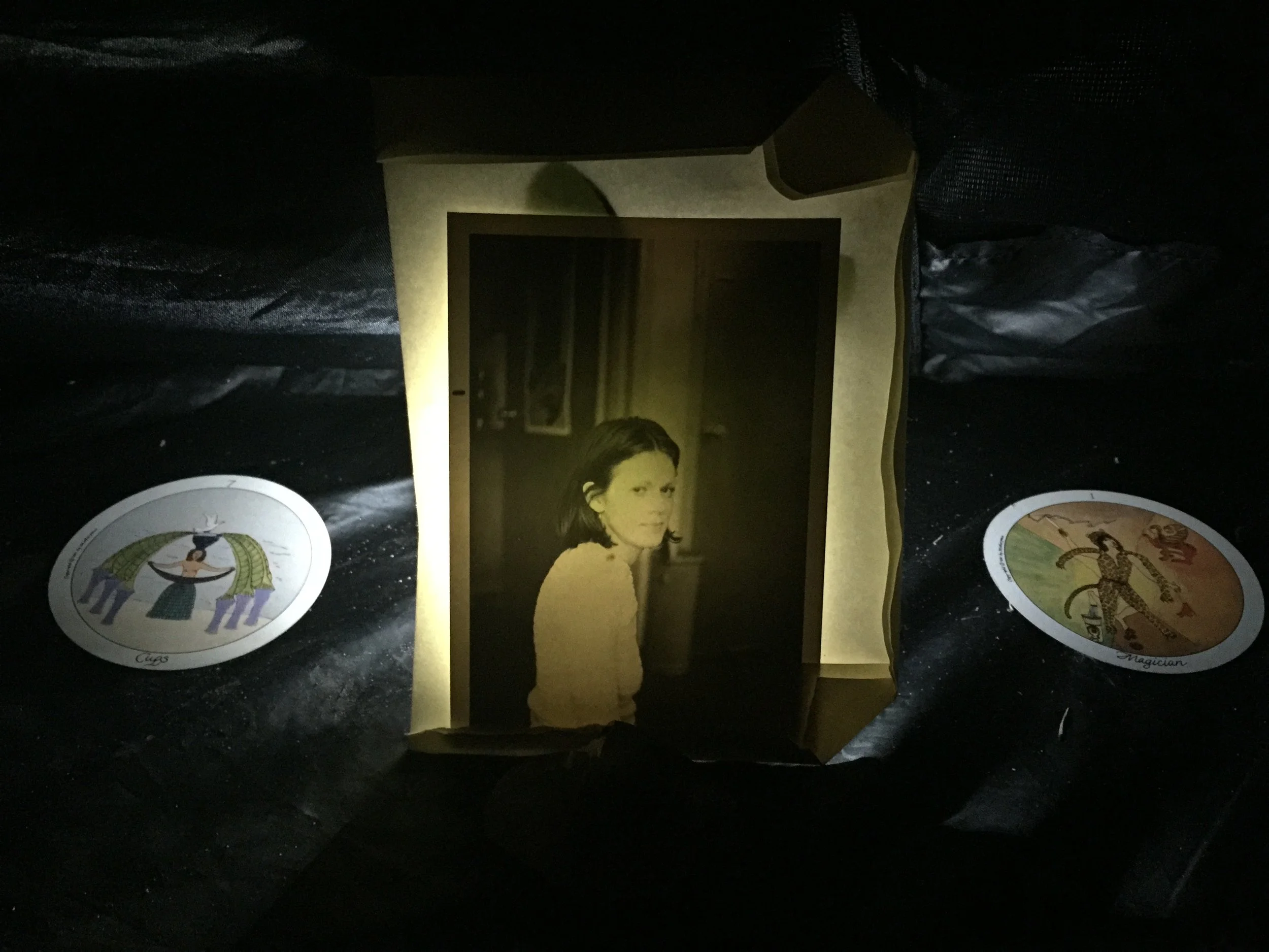 The Magician is 1 in the Major Arcana. She carries a knife that cuts a lightning bolt into the sky, marking the moment of self-recognition in human development. She is the fire of will and the magic of self-determination. She is my muse and my totem on this dark midnight on the first day of June. She brings light to the darkness and whispers 'You Can Do It' in my mother's voice.