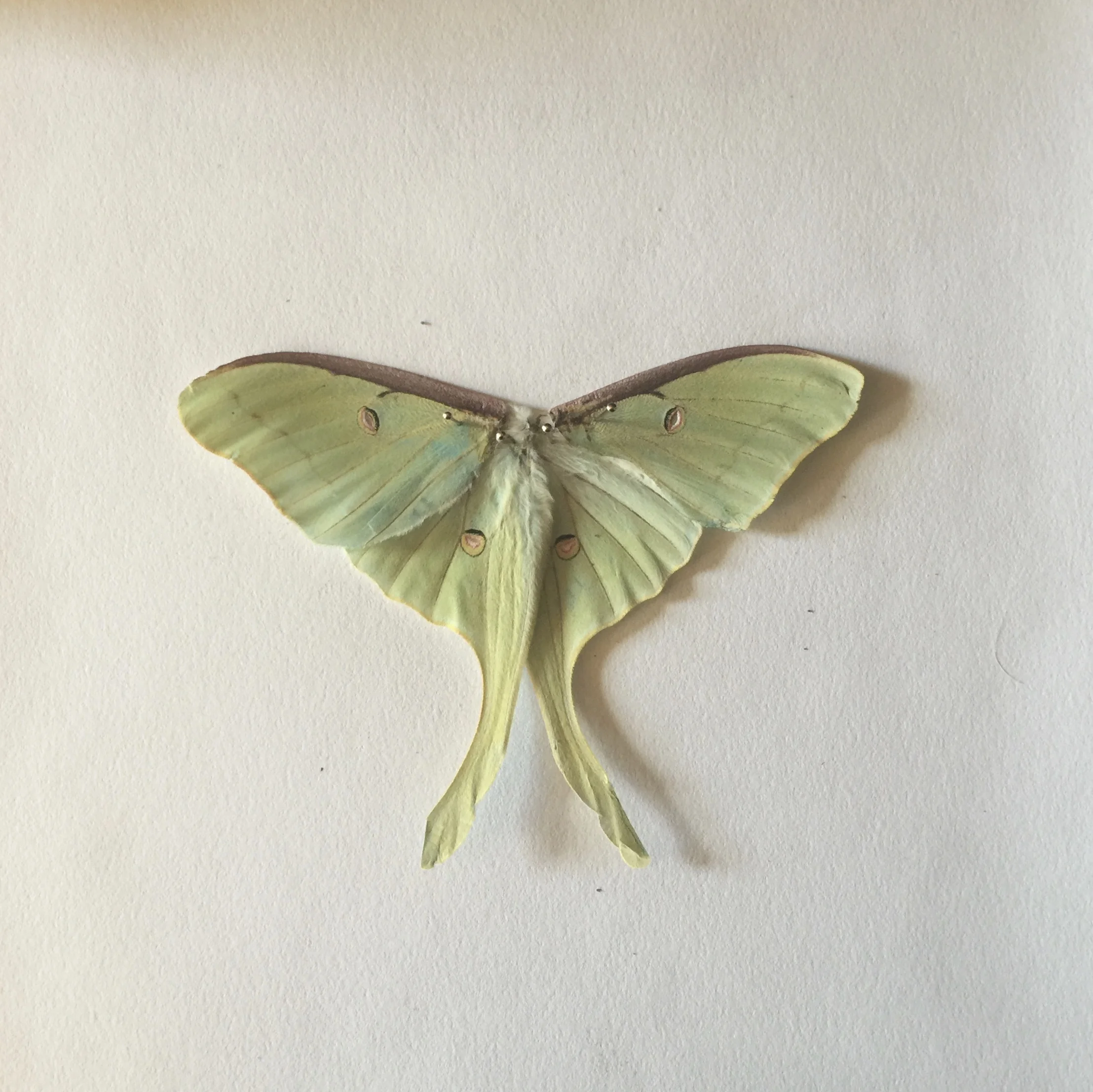 Luna Moths live for just one week in Spring. They do not eat or sleep; their sole purpose is to mate. They are nocturnal creatures, drawn to flight by pheromones on the wind and into the flame, perhaps, by some instinct to transform again.